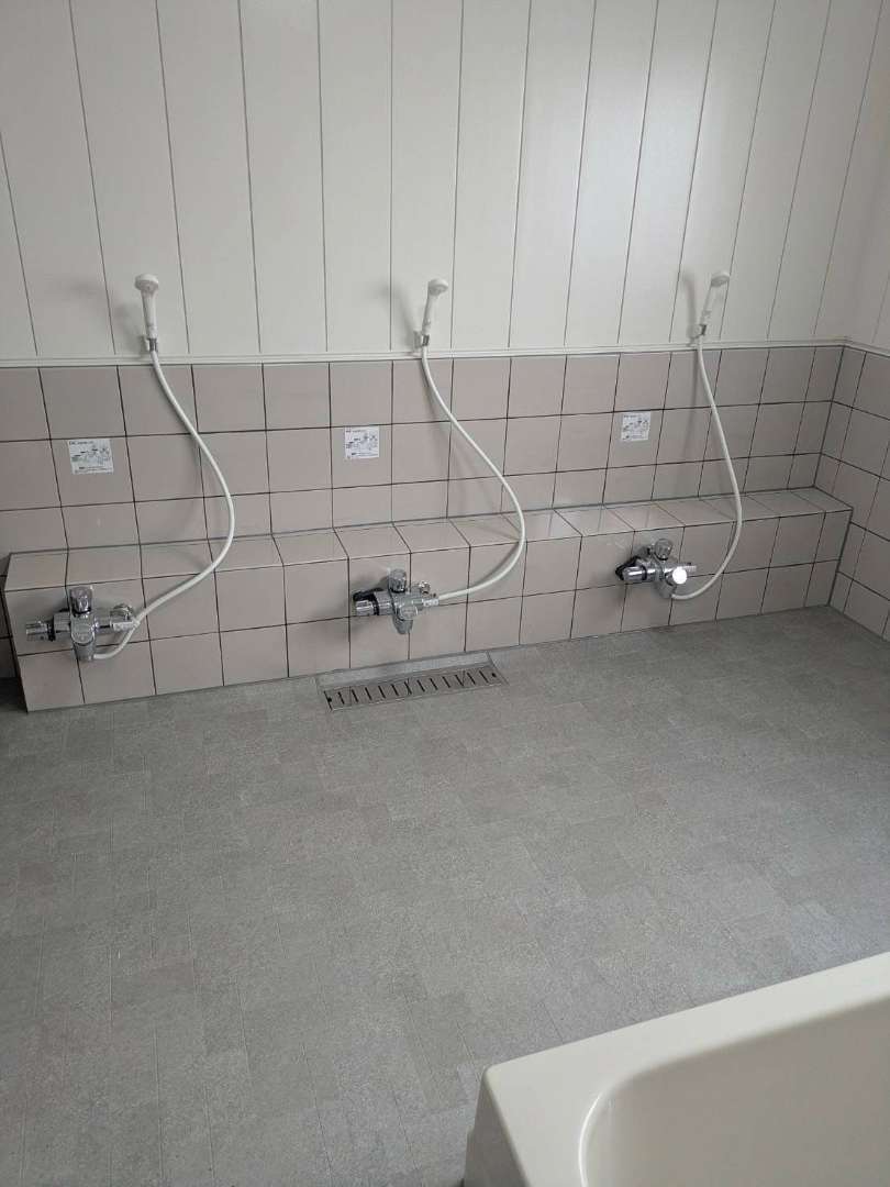 戸建て リフォーム工事 市原市 姉崎 浴室・脱衣室 改修工事 <工事の背景>築50年木造のタイル貼り浴室で経年劣化で水漏れをしていました。何年も応急処置でしのがれておりましたが、今回改修工事のご依頼をいただきました。<施工ポイント>・水栓も光熱費削減のため、プッシュ式セルフストップ水栓に変更。・お年寄りが多いので、滑りにくい床に変更。・タイル目地のカビが目立たないように白ではなく、黒を採用。<お客様>NPO法人 レインボーハウス浴室・脱衣室入居者様には、明るくなって暖かくなったと喜んでいただきました。 場所 千葉県市原市姉崎 完工時築年数 50年 1 / 1 前の施工事例 戸建て OYATUYA tanetane 工房工事